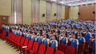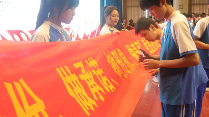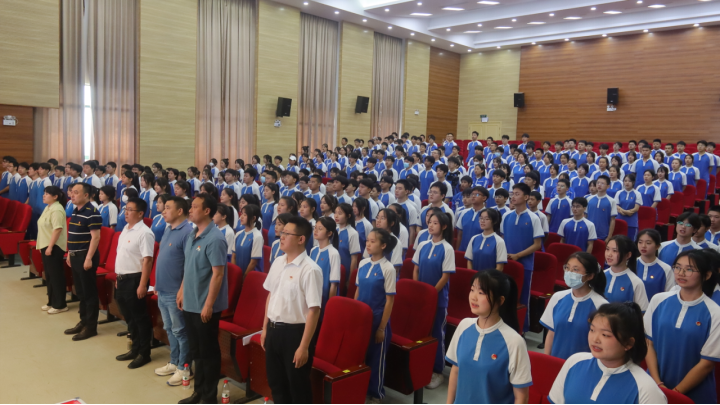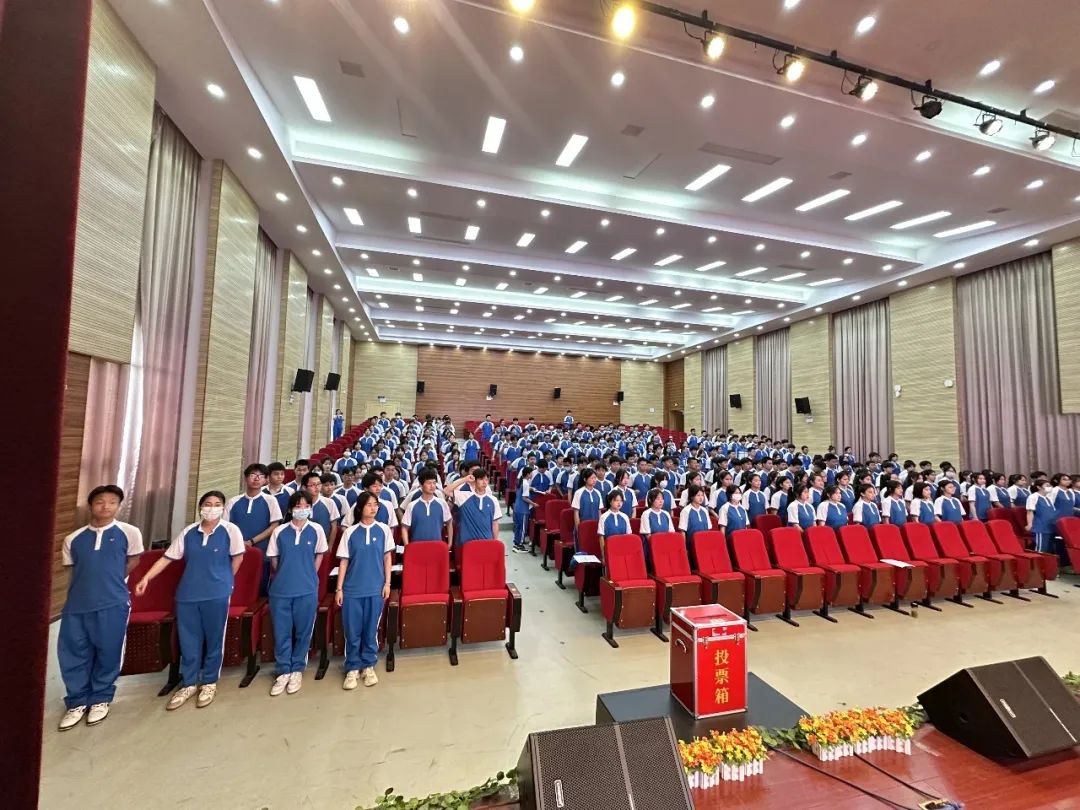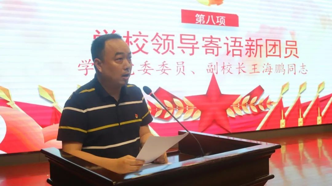 王校长热情洋溢的讲话让在场的每一位同学心潮澎湃。他首先向光荣加入共青团的260位同学表示了热烈祝贺,并提出了三点期望:一是坚定理想信念,做红色基因的传承者。要高举团旗紧跟党走,自觉树立为党和人民的事业不懈奋斗的远大抱负;二是刻苦锤炼本领,珍惜韶华、不负青春,努力学习掌握科学知识,提高内在素质,锤炼过硬本领发扬不怕困难、艰苦奋斗的作风,勤奋学习,拼搏进取,成才报国;三是发挥示范引领作用。用实际行动与言行去影响身边的同学,去带领身边的同学一起进步,让更多的青年加入共青团这个先进的群众组织。