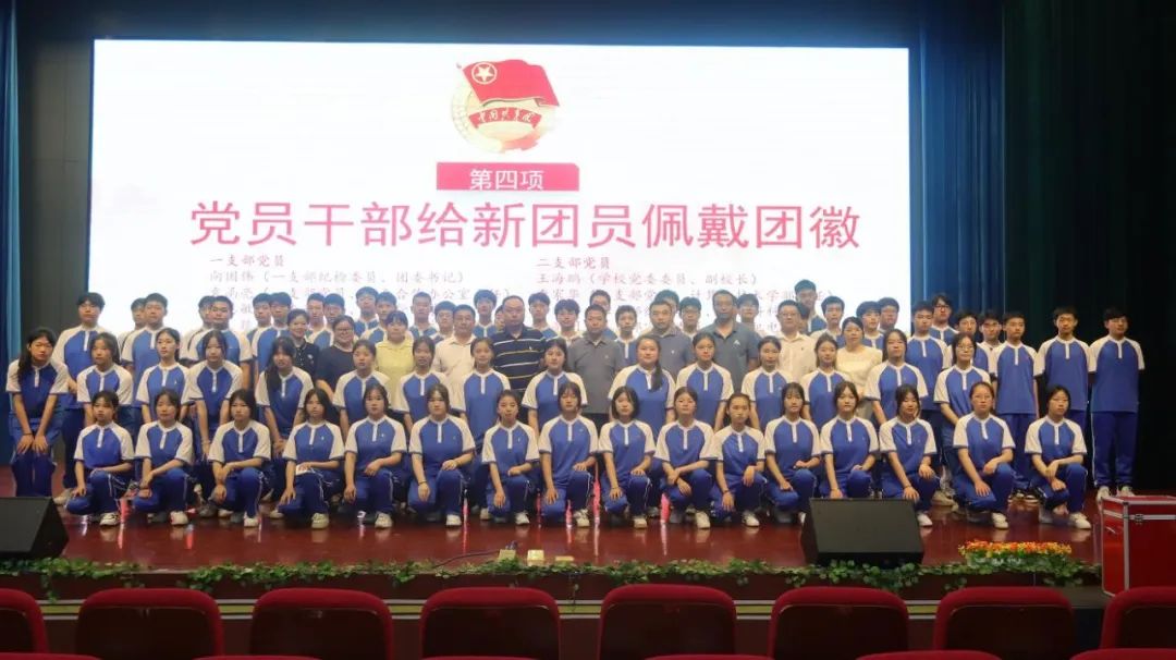 党员干部给新团员佩戴团徽