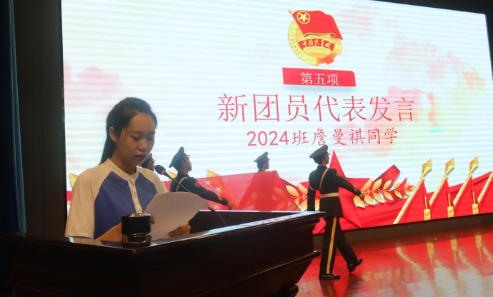 加入共青团是一种荣誉,更是一份责任。新团员代表2024班詹曼祺同学表示成为共青团员并不意味着追求的结束,而是我们人生道路上一次更高更新的起航,并承诺自己将遵守共青团章程,切实履行团员义务,刻苦学习,诚实谦虚,扎实掌握为人民服务的真本领。