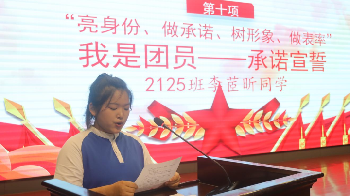 为全面从严治团,把好团员发展入口关,规范团员发展程序,强化入团仪式教育,在入团仪式上,260名新团员签署了“亮身份、做承诺、树形象、做表率”我是团员承诺书,2125班李茝昕代表新团员进行了宣誓。