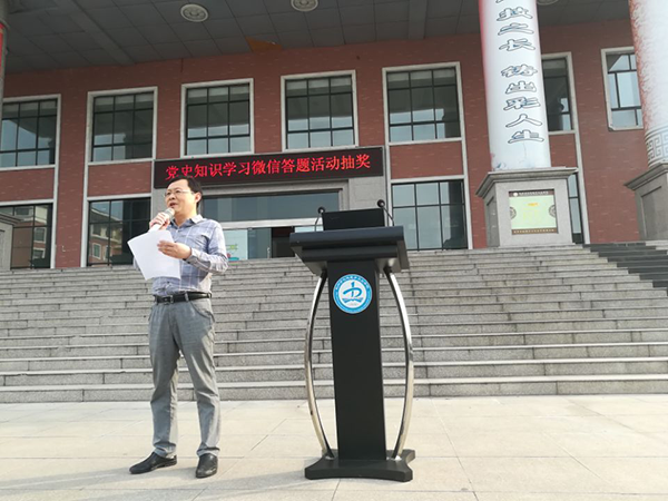 5月3日早上,校党办、基础文科教研室和学工科在学校广场举行了学生党史知识学习微信答题抽奖仪式。学校领导、中层干部、班主任、3000多名学生参加了抽奖活动。