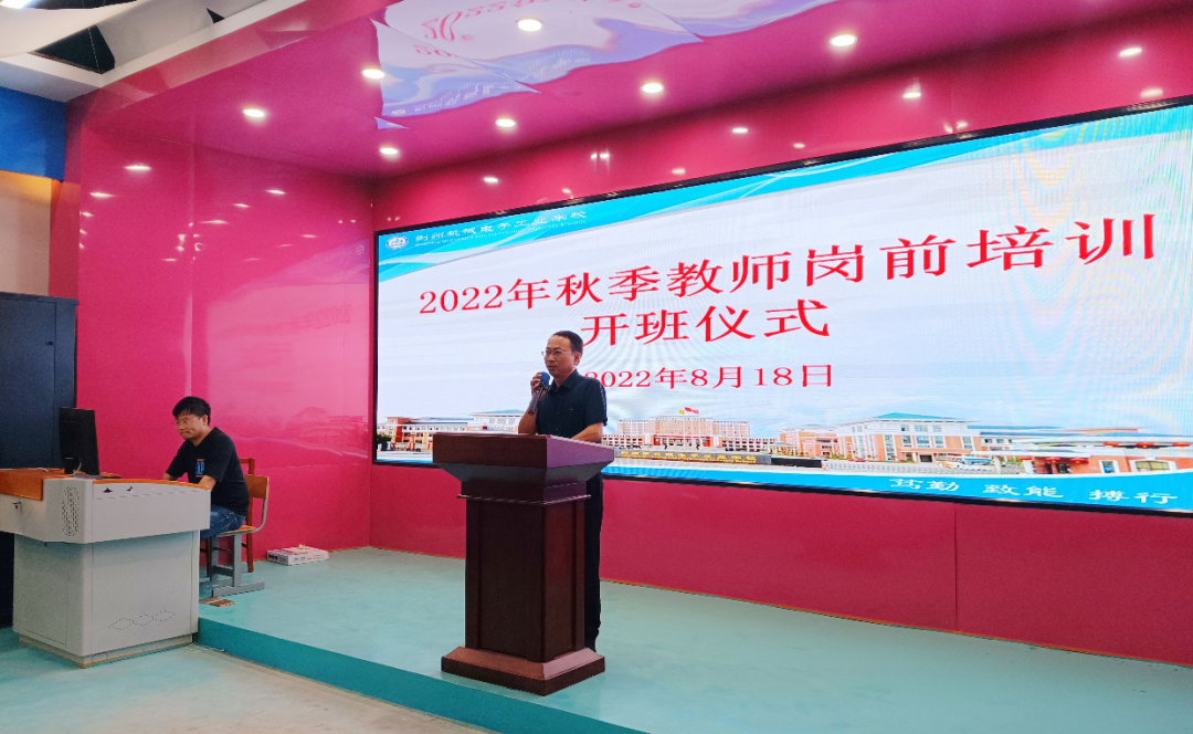 8月18日上午,我校举行了2022年新教师岗前培训开班仪式。校党委副书记、校长李念军出席并讲话,纪委书记李卓慧,副校长王海鹏,各职能部门负责人及34位新入职教师参会。仪式由教务科科长熊伟主持。 开班仪式在雄壮的国歌声中拉开序幕,教务科孙建刚老师带领全体新教师庄严宣誓。 全体参会人员铿锵有力、掷地有声地宣读人民教师誓词。宣誓仪式让教师们更加坚定职业信念和道德操守,增强教师的职业荣誉感、自豪感,提升立德树人的责任感和使命感,对每一名教师都是一种鞭策和激励。 校党委副书记、校长李念军对新教师的加入表示热烈欢迎。他指出,教育是党之大计、国之大计,选择教师职业,就是选择了一份奉献、一份责任、一份付出、一份使命、一份光荣。李校长就如何做一名好老师提出了三点希望和要求, 一是要有目标,按照习近平总书记的要求做有理想信念、有道德情操、有扎实学识、有仁爱之心的“四有”好老师; 二是要有路径和方法,养成终身学习,时时学习的习惯,向书本学习,向工作实践学习; 三是要有高尚的品德,爱岗敬业,教书育人。 最后,李校长又以长者的身份“嘱托”大家,认真把握人生新的起点,全面履行岗位职责,不断提高综合素质,抓住机遇,深度融入荆州市机械电子工业学校的发展征程。 据悉,本次岗前培训为期3天,将采取讲授和互动相结合形式,有效融合师德修养、日常行为规范培训,学生管理、课堂管理以及教学常规、教学技能培训等教师职业素养的基本内容,帮助新入职的教师提高个人业务水平,尽快适应新的工作岗位,走好职业生涯的第一步。
