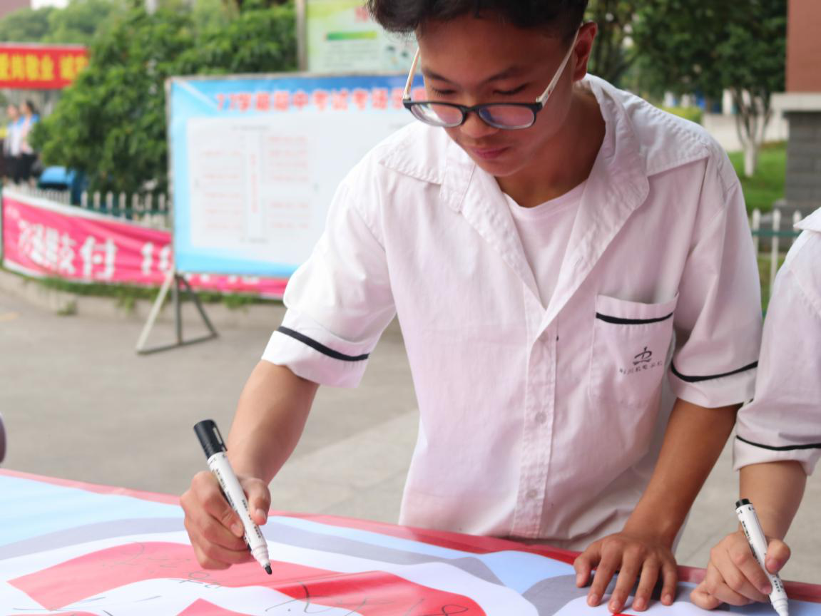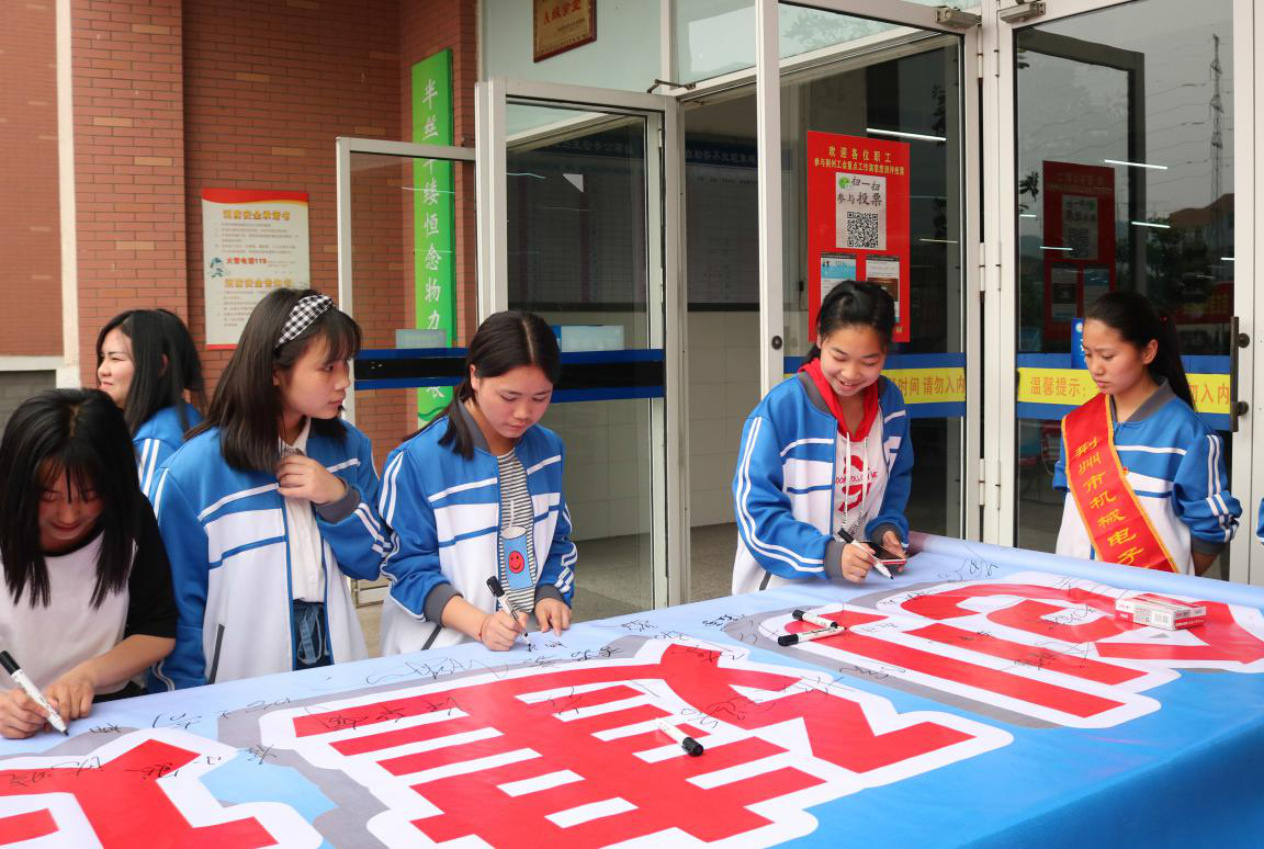 2018年5月2日中午12点,我校“创文明城市.做文明市民”千人签名活动,在食堂门口举行。 全校师生都积极踊跃的在横幅上签下自己的名字,庄严承诺:一言一行讲文明,做人做事讲诚信,创建连着你我他,众手浇开文明花!。
