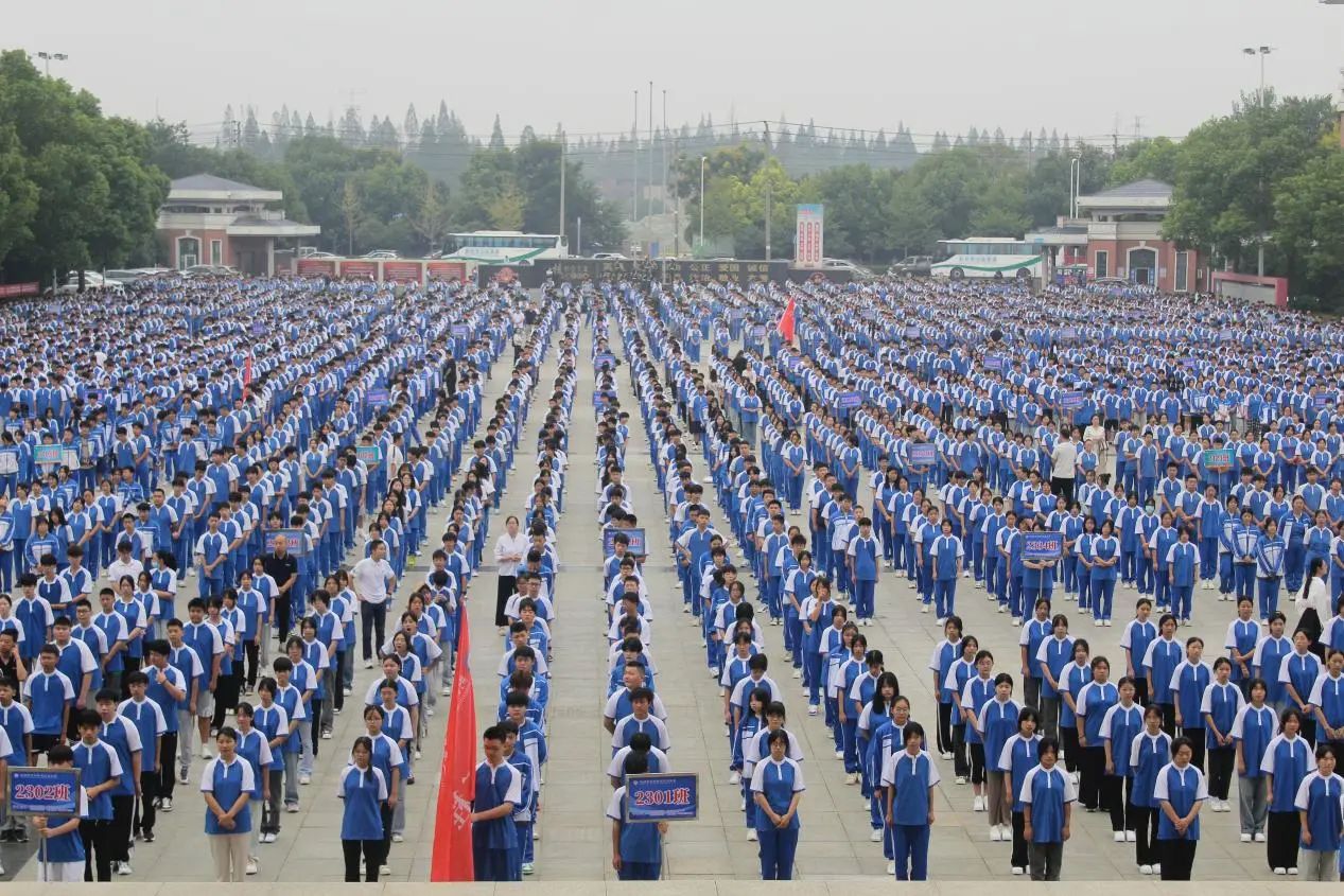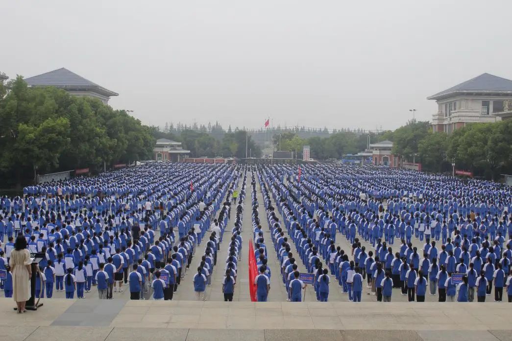 全体师生齐聚广场参加开学典礼