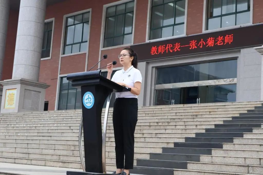 湖北省中等职业学校班主任能力大赛一等奖获得者、党政办副主任、艺术工程学部专业教师张小菊老师作为教师代表庄严承诺:在新学期里,将继续本着“对学生负责”的信念,以敬业务实的工作精神开拓进取,做同学们的良师益友。