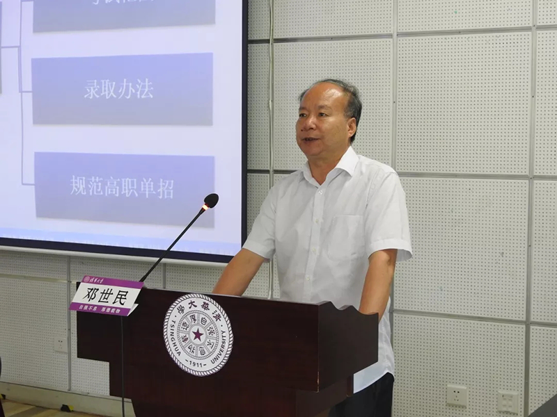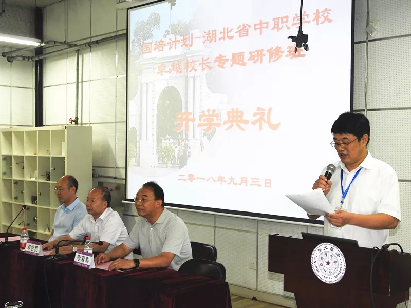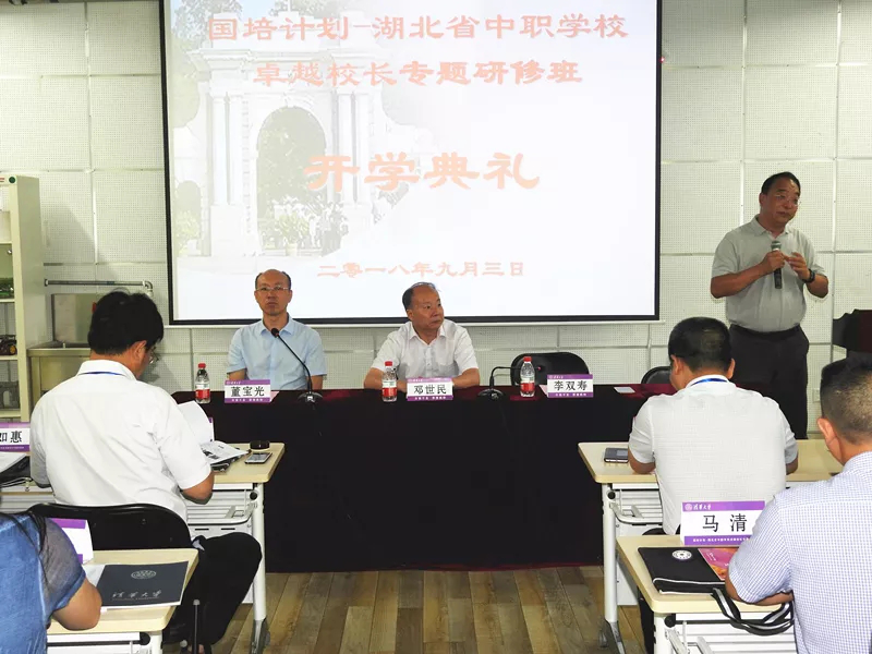9月3日上午, 湖北省教育厅职业与成人教育处邓世民处长、清华大学职教师资培养培训基地、清华大学基础工业训练中心主任李双寿教授、清华大学基础工业训练中心培训部副部长董宝光老师出席了本班的开学典礼,李双寿主任致欢迎辞,并介绍了清华大学、清华大学基础工业训练中心近几年的发展和变化。邓世民处长为学员们作了题为《肩负起湖北职业教育高质量发展的重任》的专题报告。
