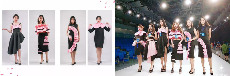 此次作品均为系列主题展出,设计师以中国传统节日、川剧脸谱、墨染、京剧与佛祖、舞狮、海洋等元素为灵感来源,运用多种纺织工艺与色彩搭配技巧设计成衣,充分展现了全国各地纺织服装职教师生的专业水准及风采,我校的《俪影佳人》服饰系列设计也从中脱颖而出,荣获优秀设计作品奖。