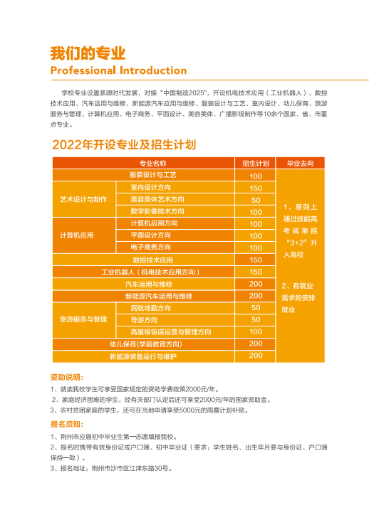 荆州市机械电子工业学校2022年招生简章